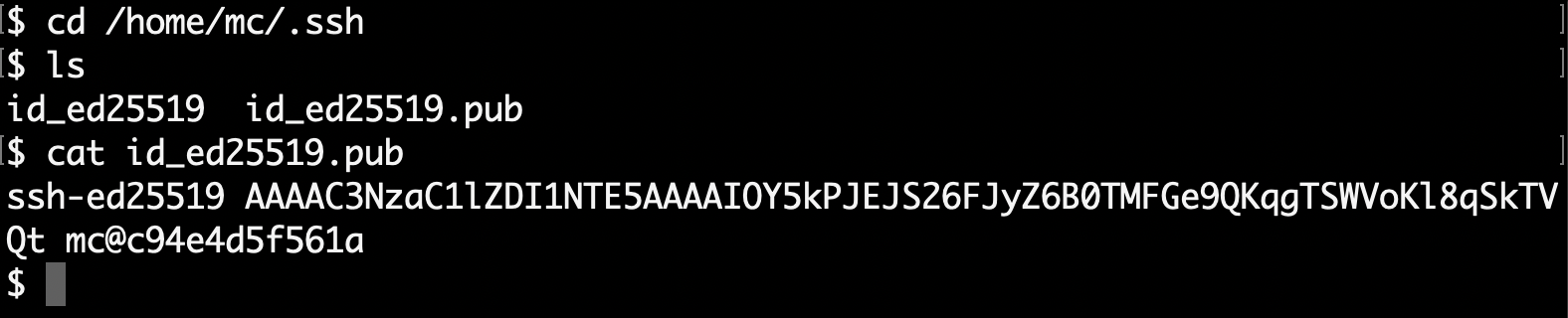 完成後,可至/home/username/.ssh下查看兩把key,並使用cat查看public key: